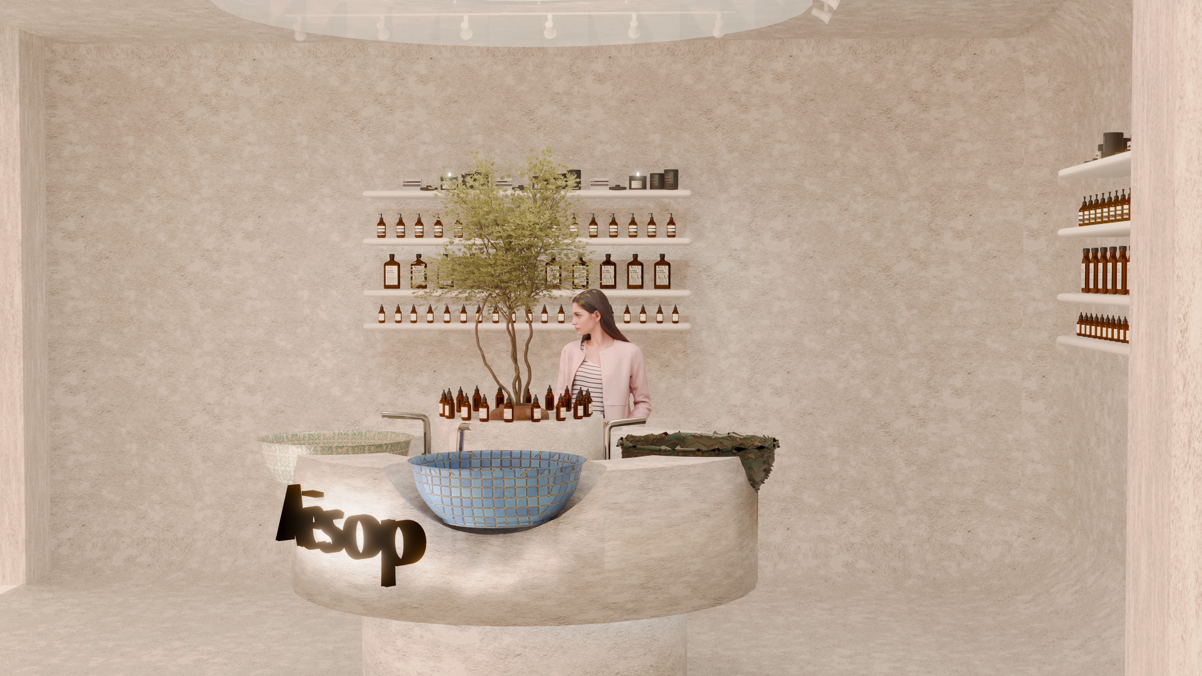 Overall, the aim is to translate Aesop’s minimalist approach into a calm, nature-inspired setting rooted in Mediterranean culture.